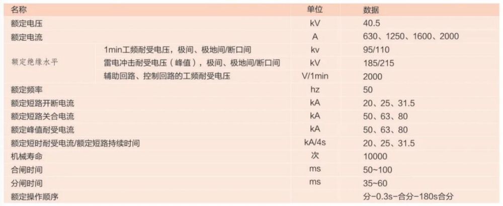 2.ZN85-40.5斷路器配彈簧操動機構(一體)技術參數